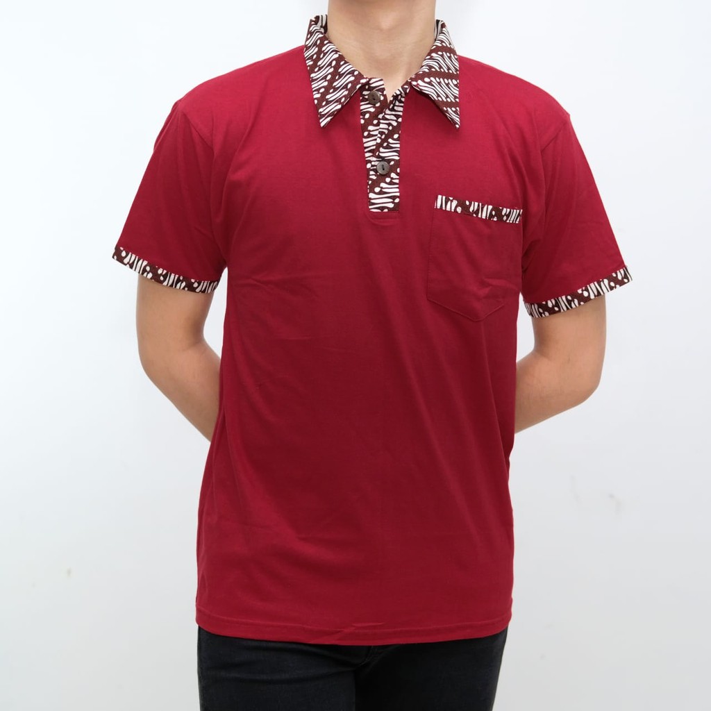 Name: Kaos Kerah Polo Batik Pria Lengan Pendek Warna Merah Maroon Premium Jabrik Jogja
